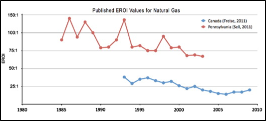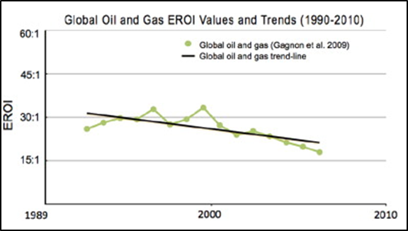 Het is een verhoudingsgetal , dat normaal boven de 1 ligt (anders zou de investering “niks opleveren”). Het getal daalt dichter naar 1 naarmate de te winnen energie moeilijker bereikbaar wordt in de loop der tijd ; in grafieken geeft dit een dalende lijn te zien