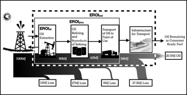 Dit blok gaat over EROI = Energy Return on Investment , maw hoeveel eenheden energie krijg je terug als je één eenheid besteedt aan het oogsten ervan.