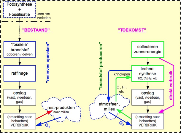 - – Aan de linkerzijde is te zien hoe wij totnutoe omgaan met fossiele brandstoffen : we halen de energie eruit en lozen de restprodukten naar de omgeving.