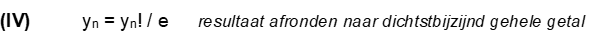 Met uitbreiding via de formules naar n = 6 , 7 en 8 zag ik dat de resultaten snel en konsekwent wisselend convergeerden naar een waarde van ca 0,3678…..
