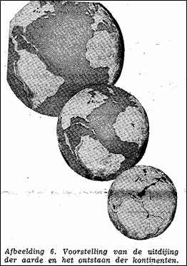 In het plaatje (“Afbeelding 6” uit Ref.1) zie je uitgebeeld hoe de continent-schollen tegen elkaar aansluiten als de aardbol kleiner wordt gemaakt.