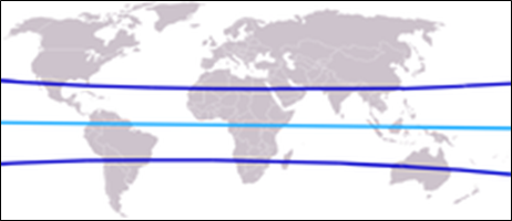 - Onthouden : de stralingsintensiteit op het grondvlak volgt ongeveer een cos-funktie naar de polen toe